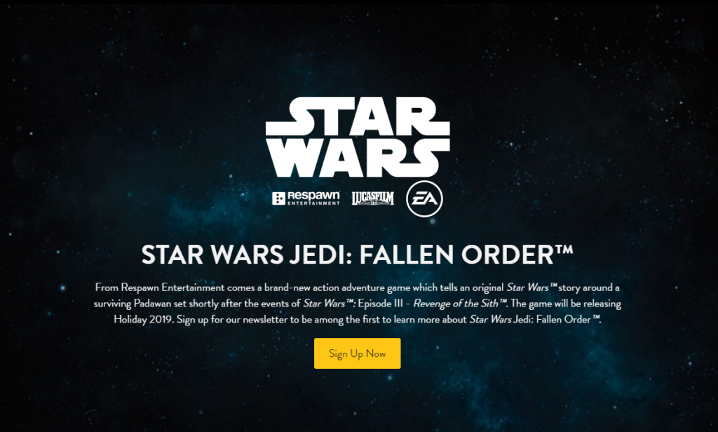 Bagi kami, ini adalah pengumuman yang agak pelik. Pemilik studio Respawn Entertainment, Vince Zampella, mengumumkan permainan baharu Star Wars dari mereka adalah bernama Star Wars Jedi: Fallen Order, yang akan ditempatkan semasa “zaman gelap” untuk generasi Jedi. Apa yang janggalnya, pengumuman tersebut tidak dibuat diatas pentas, namun lebih kepada disebalik tabir. Tiada info, mahupun gambar atau video juga logo diumum oleh syarikat yang sama disebalik pembikinan siri Titanfall ini.