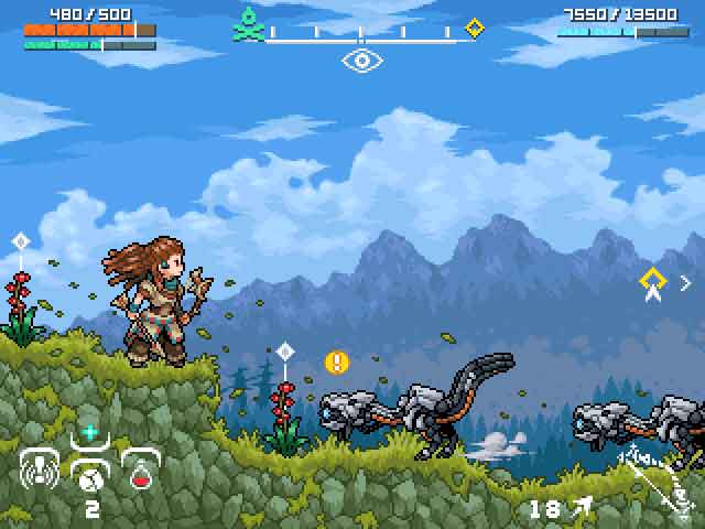 Yang terakhir adalah amat unik, sebuah gambar yang kami boleh anggap tajuknya sebagai Horizon Zero Dawn: Pixelated Edition. Dimuat naik oleh pengguna Twitter toyaken21, karyanya dilengkapi dengan UI (User Interface) seakan didalam permainan video itu sendiri.