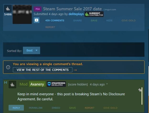Informasi ini berkemungkinan sahih atas dari maklumbalas dari seseorang pemaju permainan menyatakan perkongsian tersebut menyalah disisi undang-undang NDA (Non-Disclosure Agreement) oleh Steam.